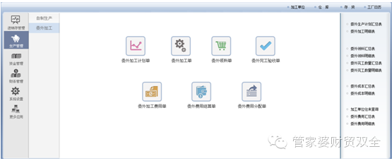 ㈣委托外加工(外協(xié))也是有單獨的模塊在操作,可以實現(xiàn)從委托加工、領(lǐng)料、完工收回、加工費核算等系列管理點。